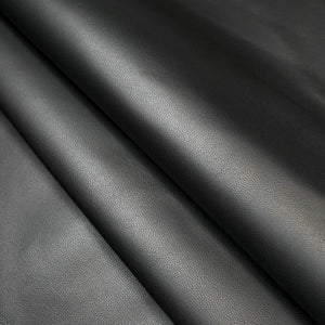 - Classic matte black leather. Thin leather to match your projects. Soft to touch on both sides. With a visible grain texture. Perfect leather material for leather jackets etc and other stylish black leather garments.