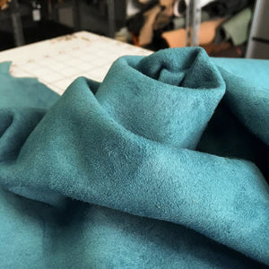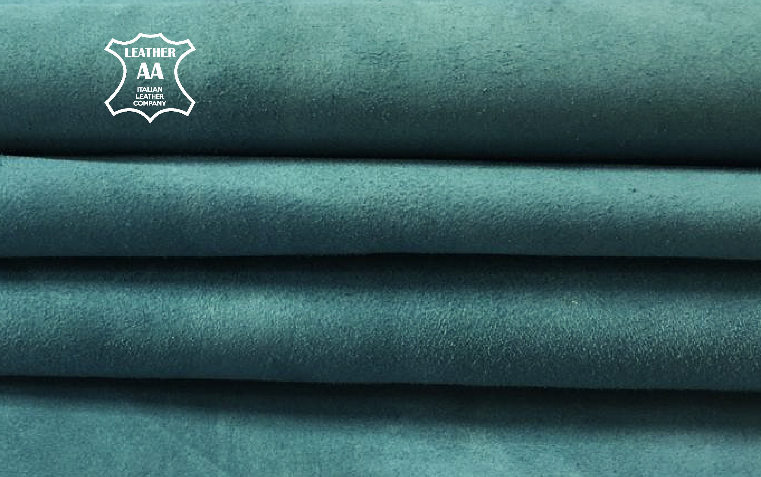 Light Teal BLUE suede fabric is quite Bright Blue genuine sheep suede, it is Real Lamb skin in Azure blue color, soft leather fabric for touch, quite firm Natural sheepskin Suede in pan-tone color MOON BLUE