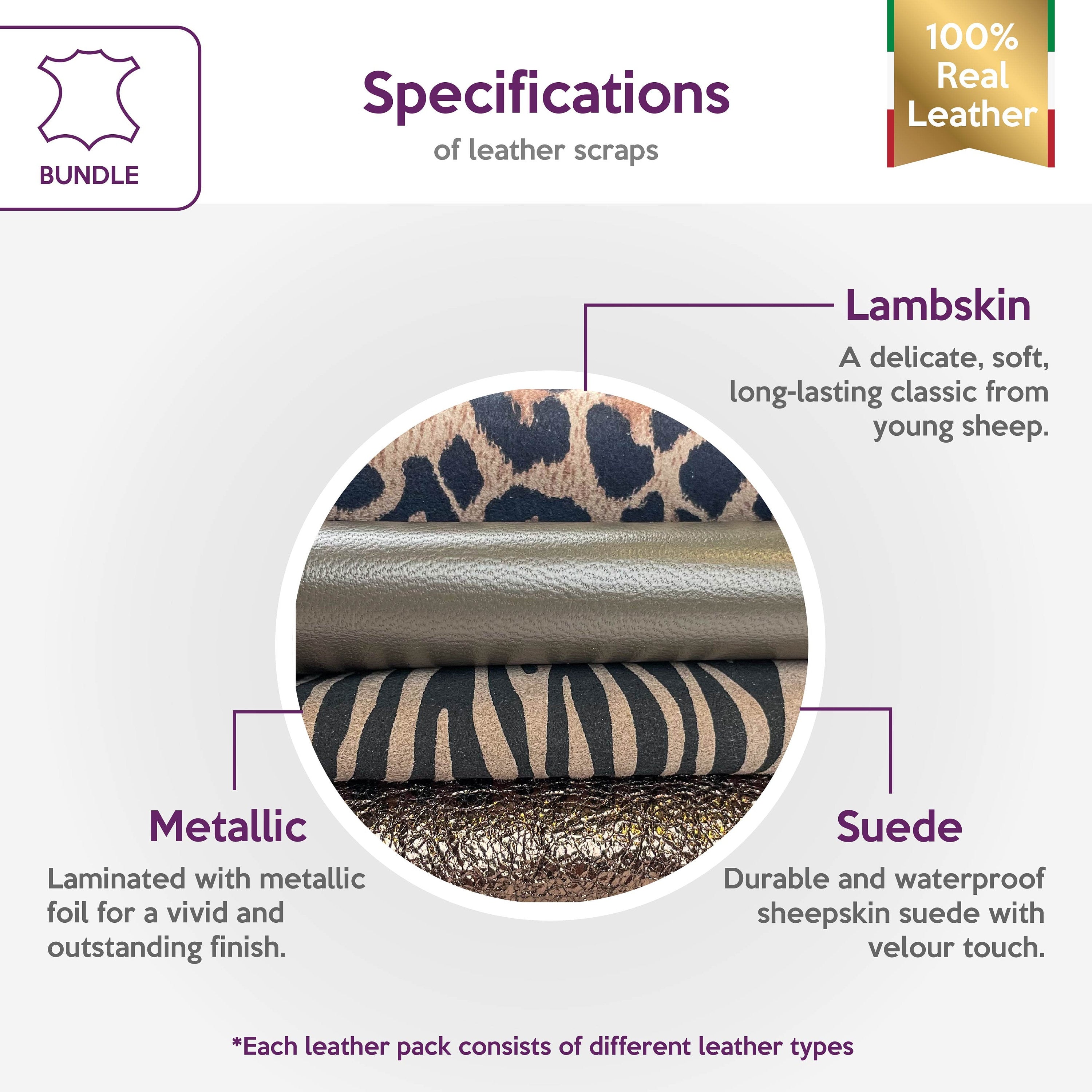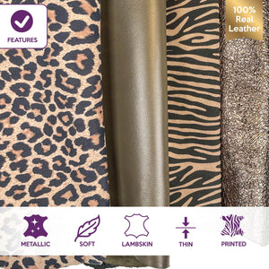 High-quality lambskin leather bundle of 4. Includes the softest sheepskin leather, beautiful metallics, and unique embossing.
