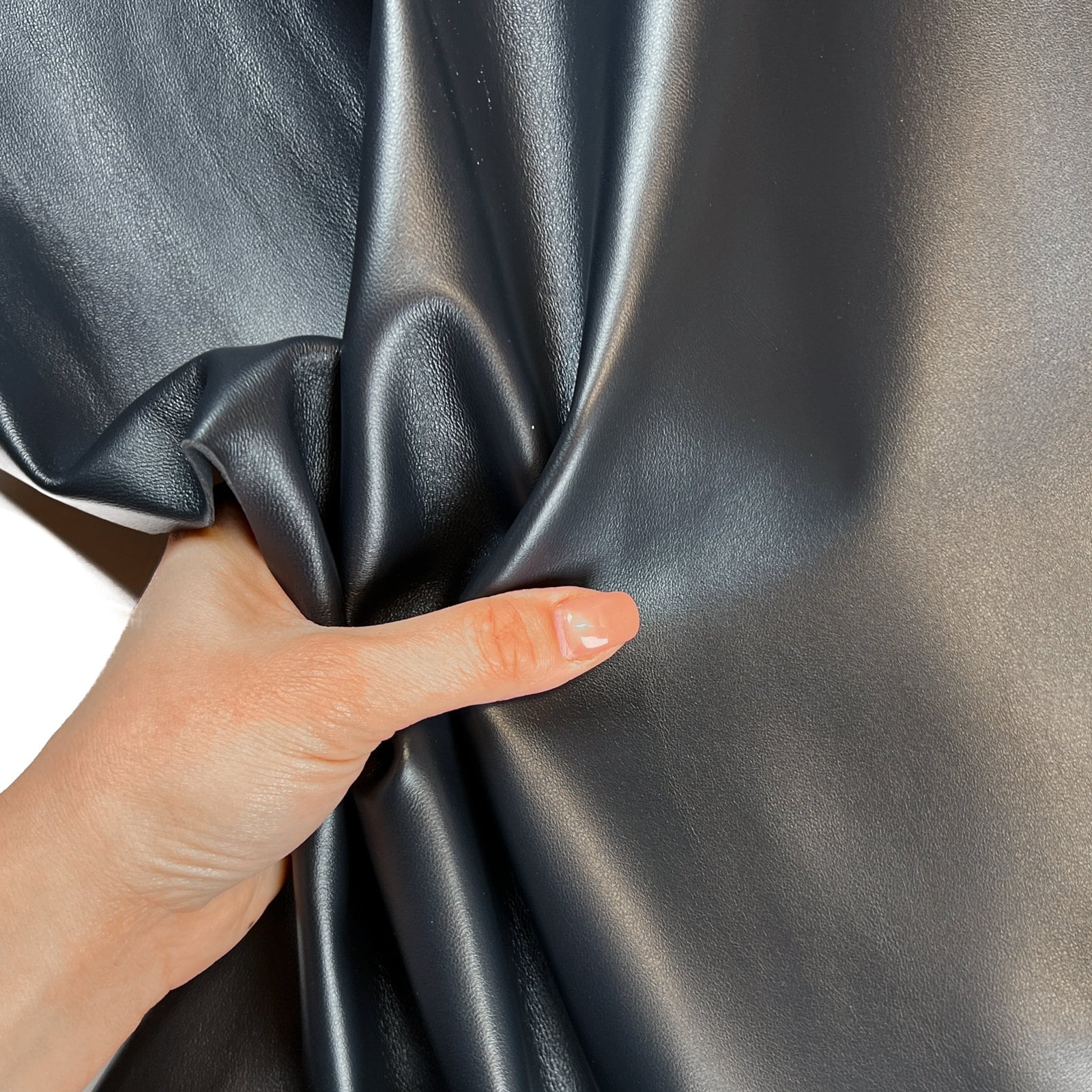Deep, glossy, and buttery-soft - this Blue Nights lambskin leather is a premium Italian hide perfect for elevated DIY and sewing projects. With its sleek, shiny finish and dark, elegant tone, this lambskin adds luxury and sophistication to small leather goods, accessories, and creative crafts. Soft yet structured, it's ideal for precise work requiring flexibility and visual impact.