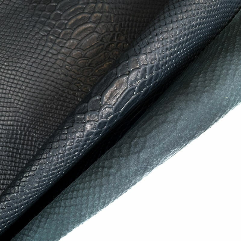 High-quality lambskin leather fabric hides in dark navy color. Snake print leather for your best projects! Our mission is to provide only the best quality Italian leather to other leather workers, crafters of all kinds, small businesses or Etsy shop for your own projects.