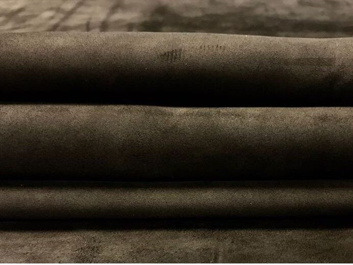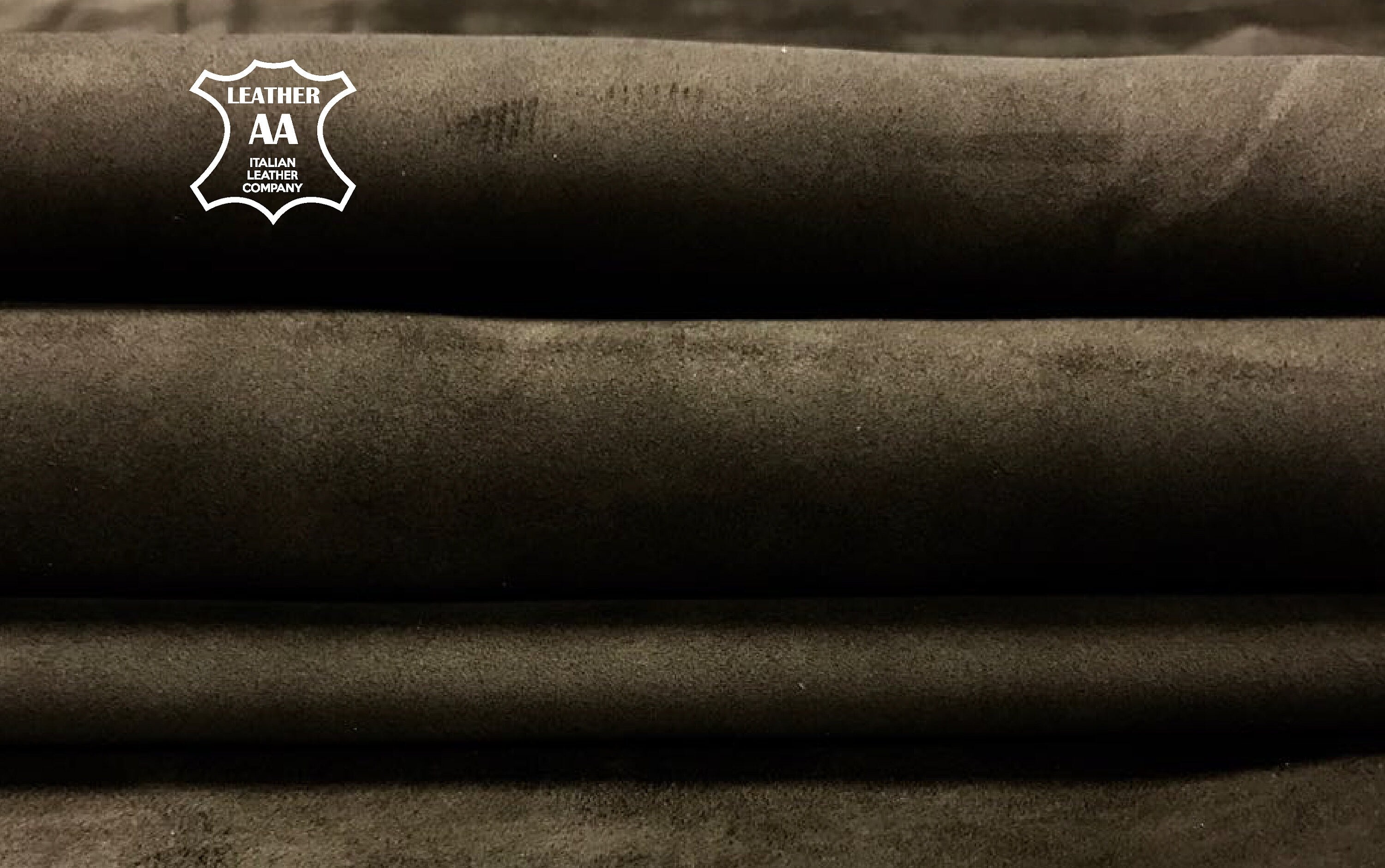 GRAY-BROWN natural suede fabric, grayish genuine sheep suede, brown natural lamb skin, genuine brown leather material WREN, 341, 0.7 mm