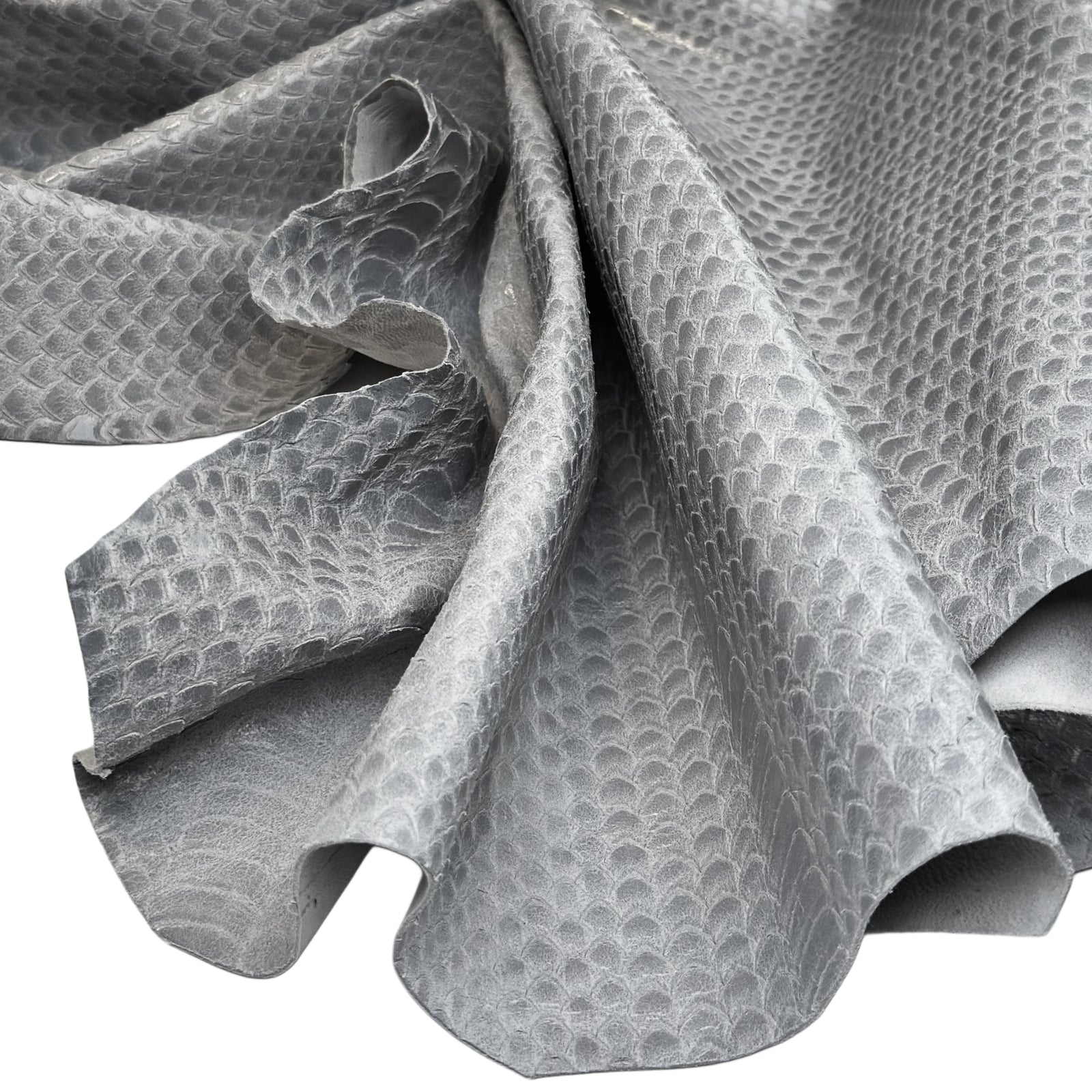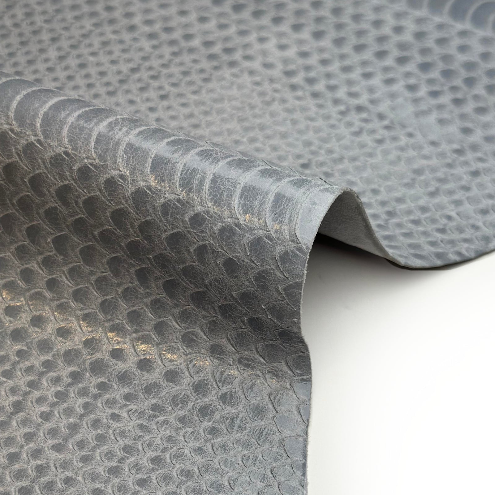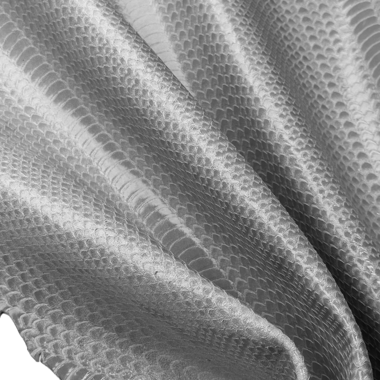 Elevate your next project with this stunning Gray Lambskin Leather featuring a laser-cut snake print finish. This piece combines the elegance of natural lambskin with the modern edge of a snake skin pattern - all in a sleek gray tone with a shiny finish that catches the light beautifully.