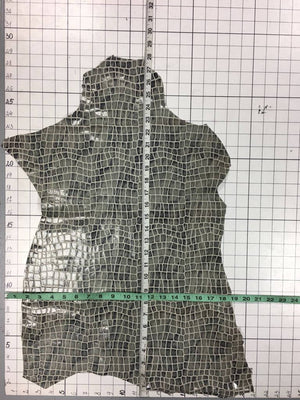 Gray snake leather print gray genuine leather fabric lambskin pelt real gray leather hide gray leather print GRAY SHINY SNAKE 492, 0.5 mm