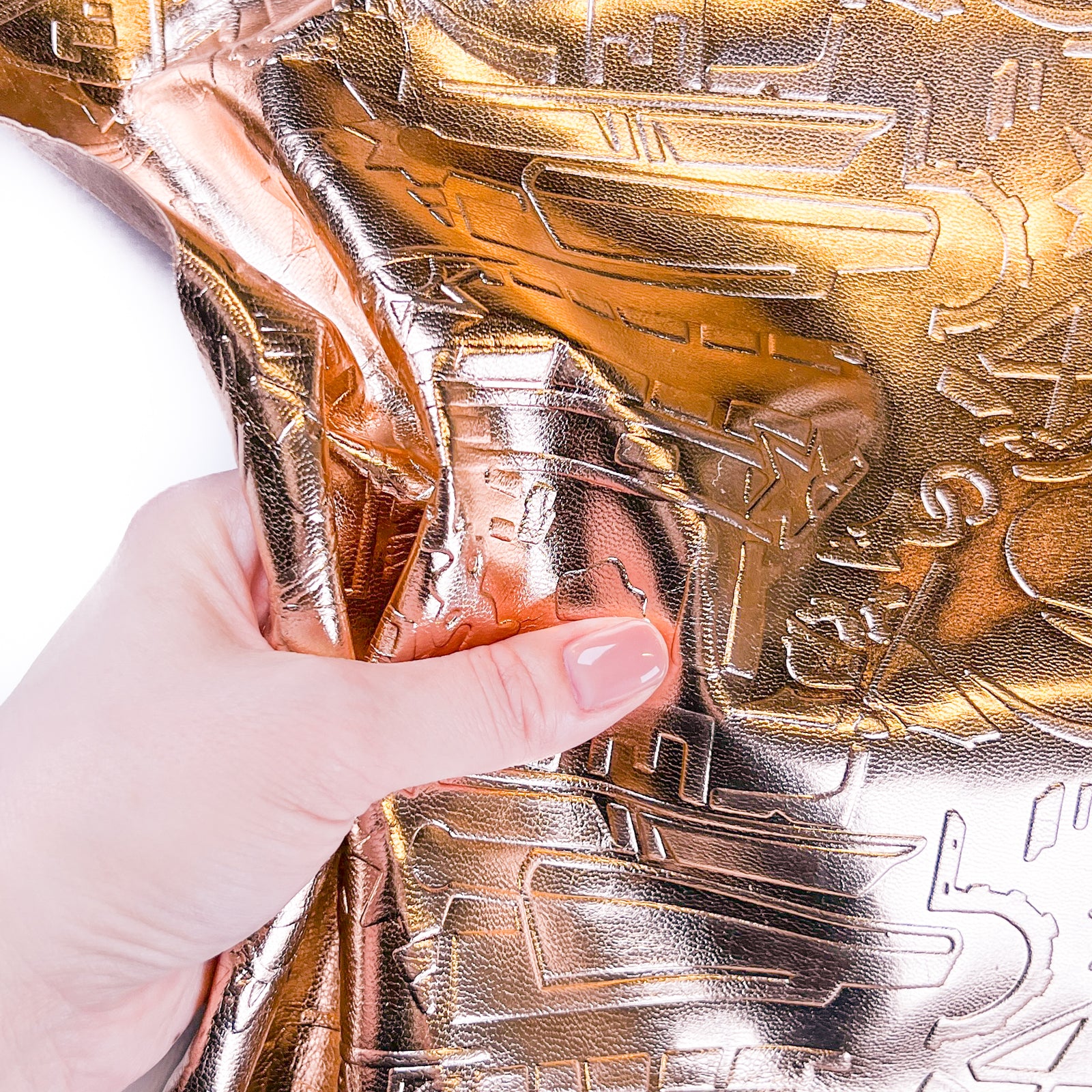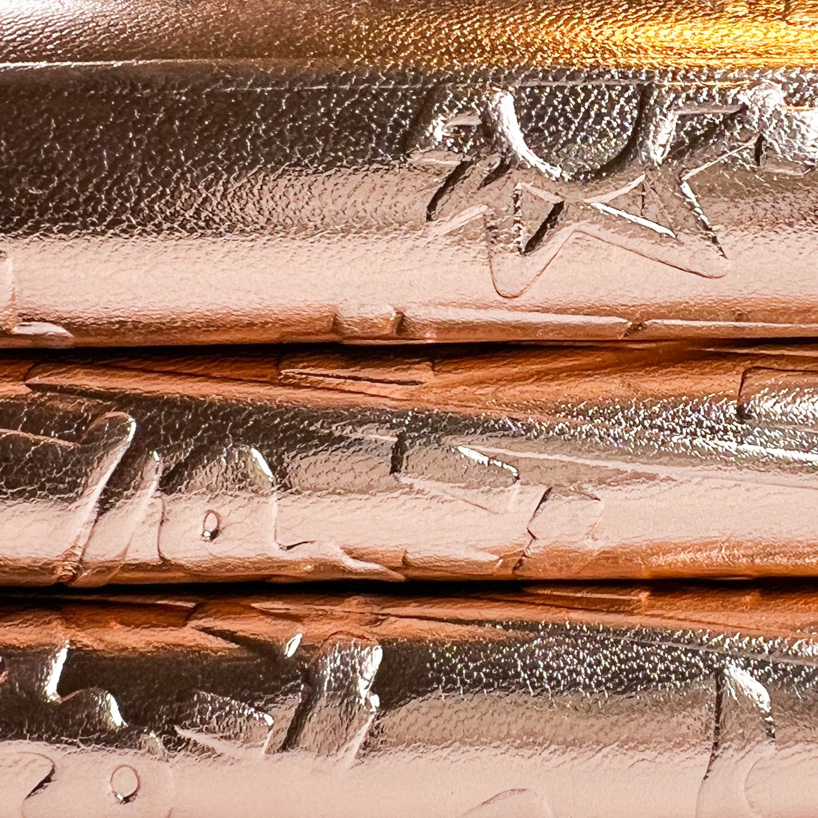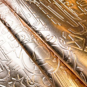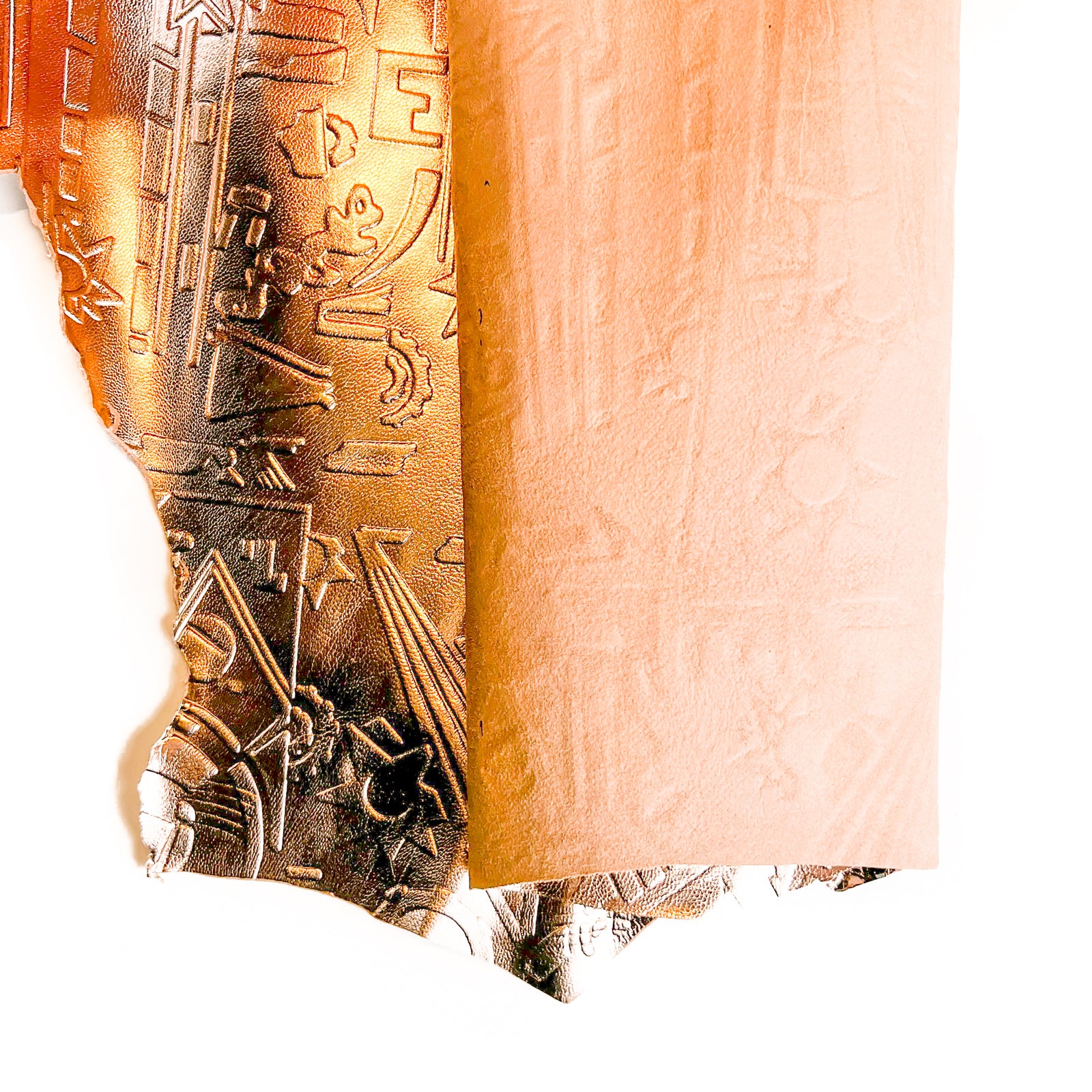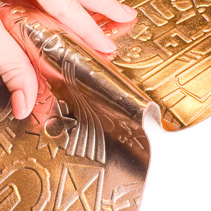 Quality rose gold lambskin leather with embossed space galaxy print. Shiny metallic textured hides. Amazing leather for bag and purse crafters will be long-lasting. Our mission is to provide only the highest quality Italian leather to other leather workers, crafters of all kinds, small businesses, or shops for your projects.