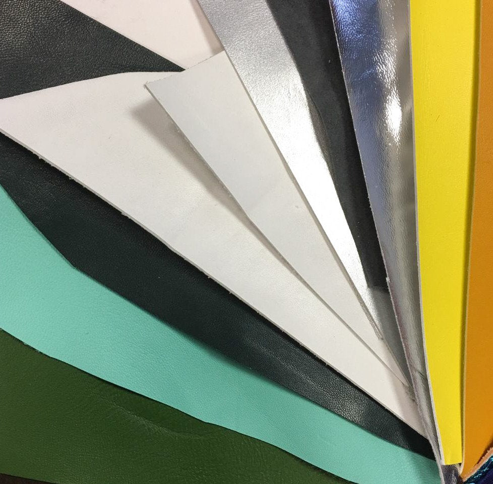 High quality lambskin leather fabric cuts in different tones. Natural leather textile scraps in different finishing. Amazing colors for your best projects!