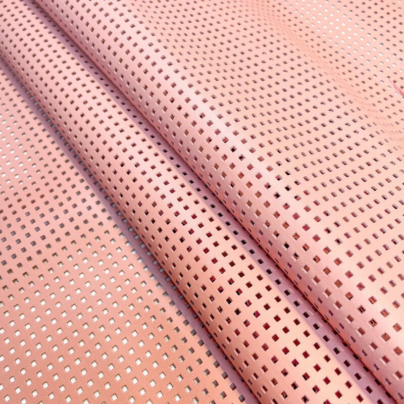 -Pale pink leather sheets. Super soft leather with small squares all over. Genuine lambskin leather pieces for sewing and handcrafting. Perforated leather hides.Try it!