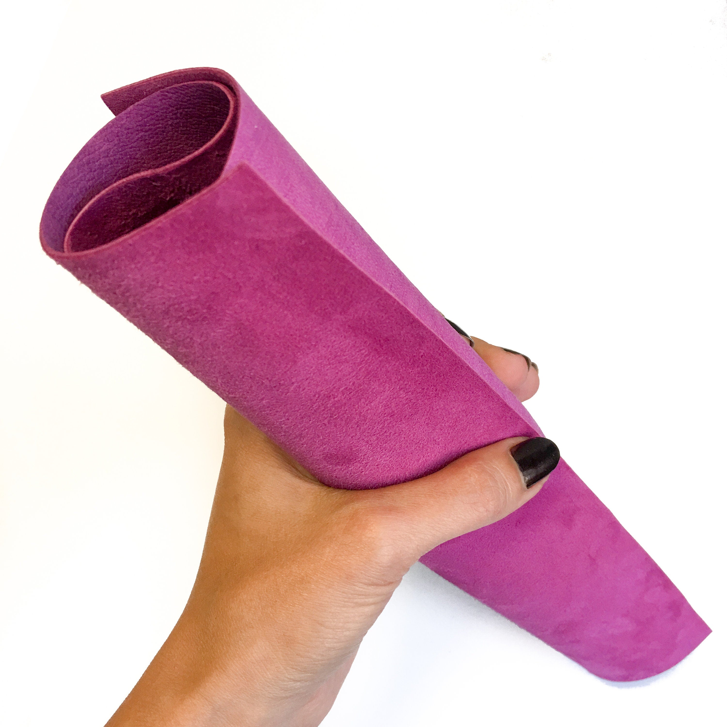 BRIGHT PURPLE SUEDE SHEETS Fuchsia Genuine Lambskin suede. Purple velour for sewing, earrings and other cool projects! "VIVID VIOLA" Name: VIVID VIOLA Code: 402(18-3339)0.8 Color: Pink Pantone: 18-3339 TPG Thickness (mm/oz) : 0.8 mm/ 2 oz Sold per piece - 1 sheet We offer other *SHEETS* at sizes: 6x6 inches (or 15x15 cm) 8x10 inches (20x25 cm almost A4 size) 12x12 inches (25x25 cm) 12x18 inches (30x45 cm or bit larger than A3 size) *MATERIAL* -Bright purple suede, genuine lambskin leather sheets. Real lambskin leather material. Beautiful, soft suede fabric for sewing and handcrafting. Hot Pink Velour from Italy. Perfect suede material for earring making, leather crafts that require soft and pliable suede in bright neon purple color -Please note that genuine leather is natural and part of an animal, scars and imperfections are all part of its character and personality. As every animal is different there aren't too identical pieces of leather in the world. *COLOR* -We do our best to match color and lightning of each skin, please be aware they might not correspond exactly to the ones in the pictures due to the many factors that can distort it (light, display, camera). We use Pantone TPG guide to determine exact color. *SHIPPING & HANDLING* Sheets are packed carefully to avoid crumbling. We ship within 1-3 days after receiving your order. STANDARD International Delivery from Europe: *to Europe - approx. 7 - 21 days. *outside Europe - approx. 10 - 30 days (including USA) EXPRESS DELIVERY (Please send us your PHONE number in DM or add a NOTE at checkout): *Choose Shipping Upgrade *Delivered in 2 - 5 days. >>>Express delivery INCLUDED buying 4 or more whole hides<<< Thank YOU for doing business with Leather AA shop and loving quality Italian leather!