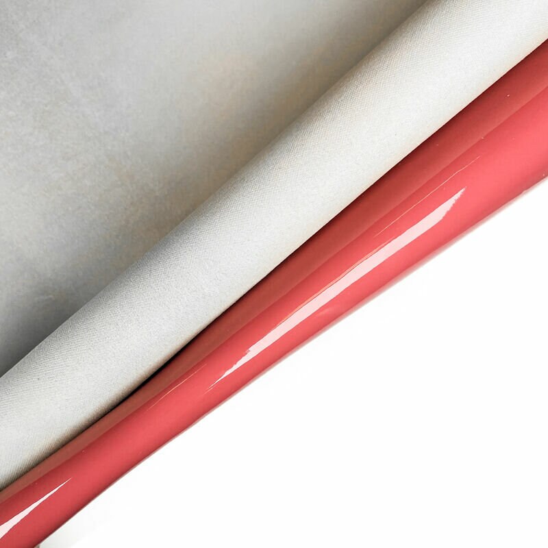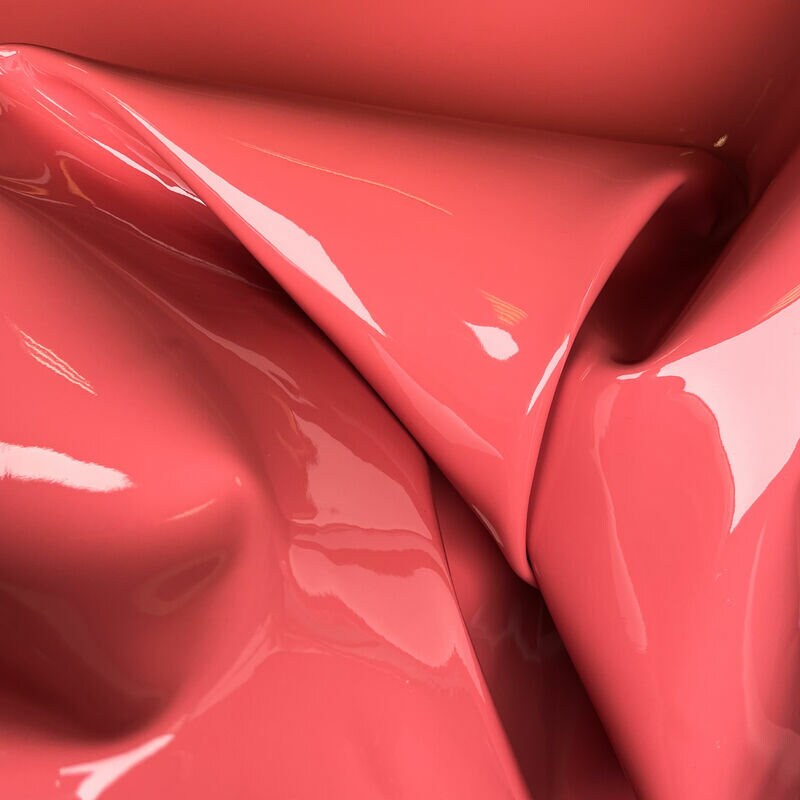 - Rose red color leather. Shiny lacquer leather pieces. Glossy lambskin fabric material. Backside is light beige. Perfect leather for sewing skirts, pants, jackets.