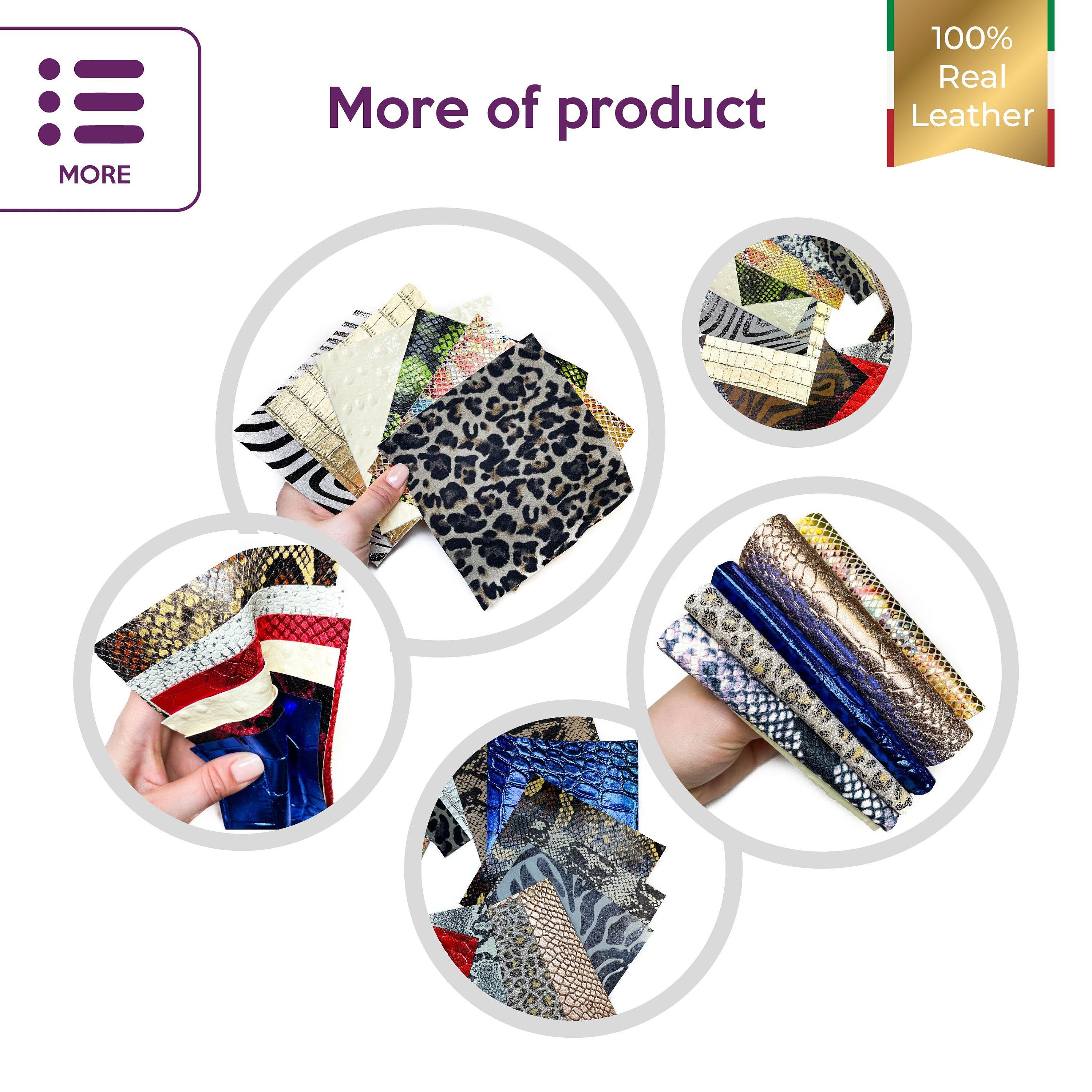 May contain different textured/printed leather pieces according to what we have in stock at that moment.