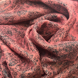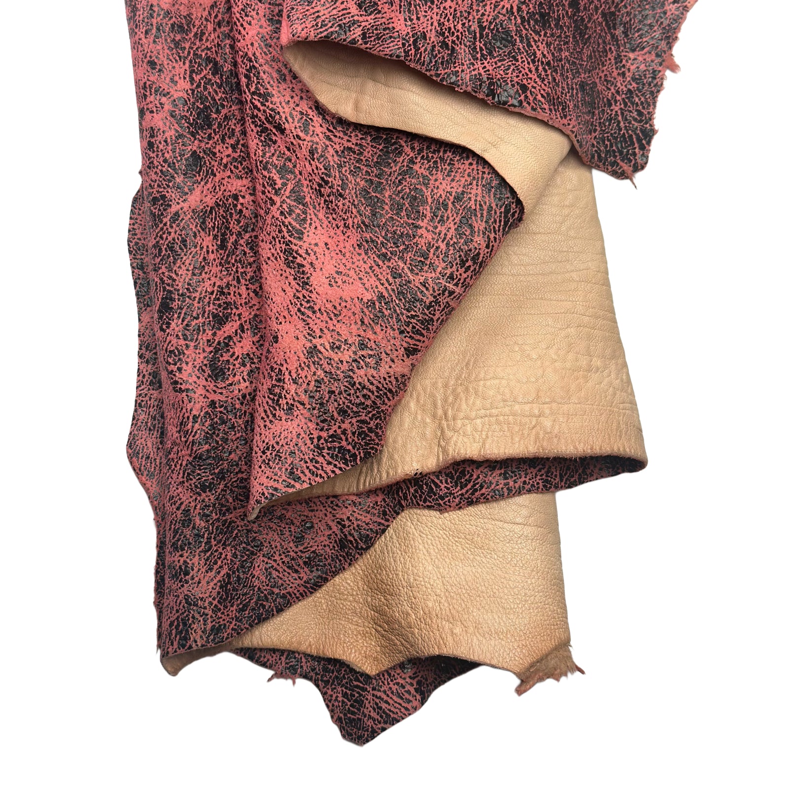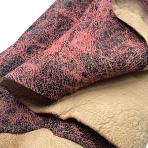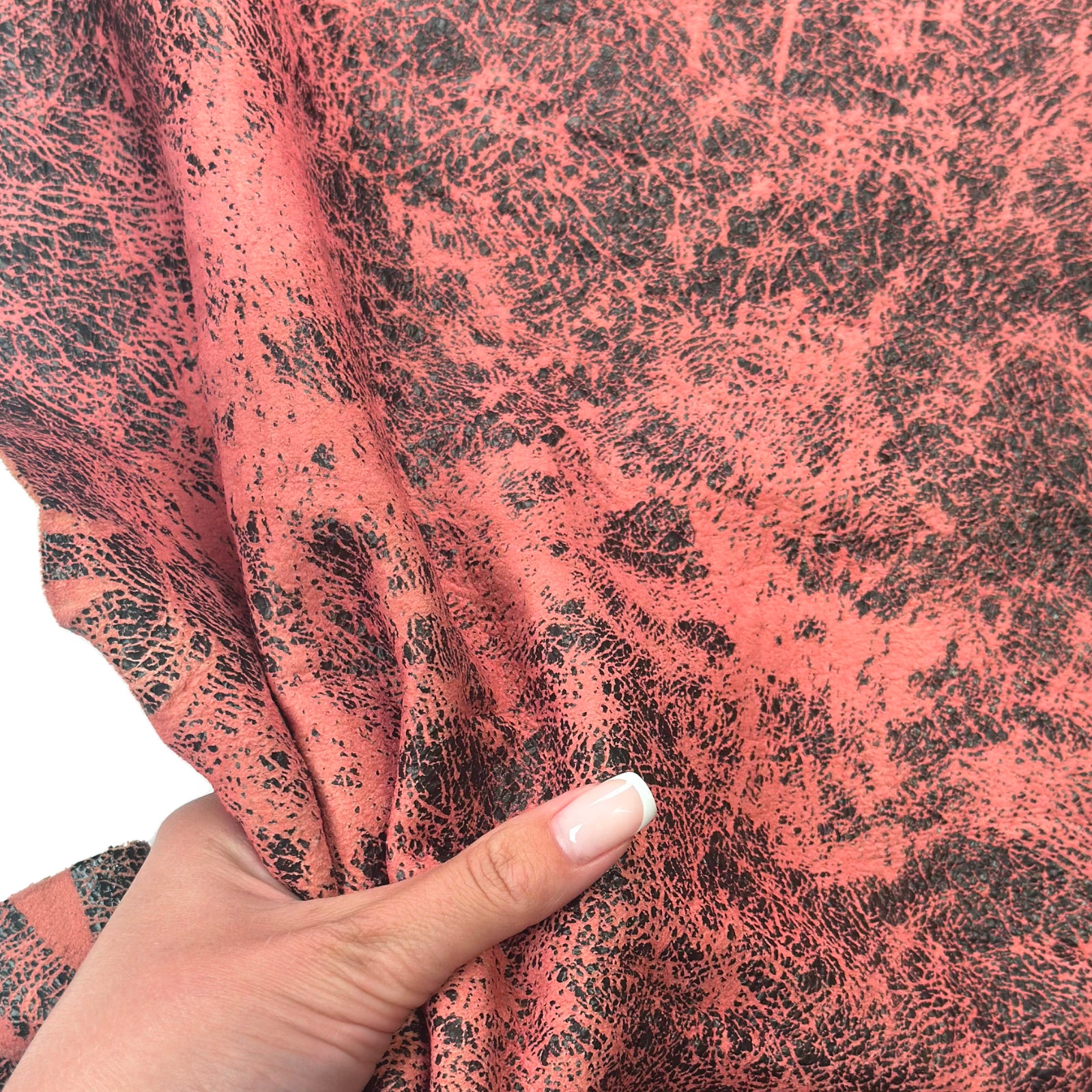 This unique vintage-style lambskin leather features a distressed crackle print in deep rose red and black tones, giving a bold, aged aesthetic perfect for edgy, boho, or retro-inspired designs. ā™„ļø