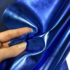 Blue Metallic Sheep Hide leather pieces, available both - whole small sheep hides and precut leather sheets. 100% Real, shiny blue metallic leather, not too stiff, quite soft, in gorgeous deep blue color.