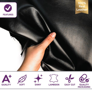 -Coal black lambskin leather pieces, natural animal skin hide. Genuine sheep skin sheets for sewing and handcrafting. Thin and lightweight lambskin leather fabric. Try it!
