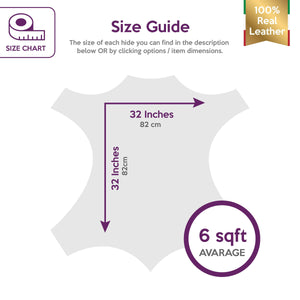 -Keep in mind that dimensions (square footage, square meters) on LEATHER refers to total workable surface area as hide shape is not consistent, so if this is the first time you buy genuine leather don`t be confused with measurements, for example 9 sqf DON`T mean 3 sqf of length x 3 sqf of wide.