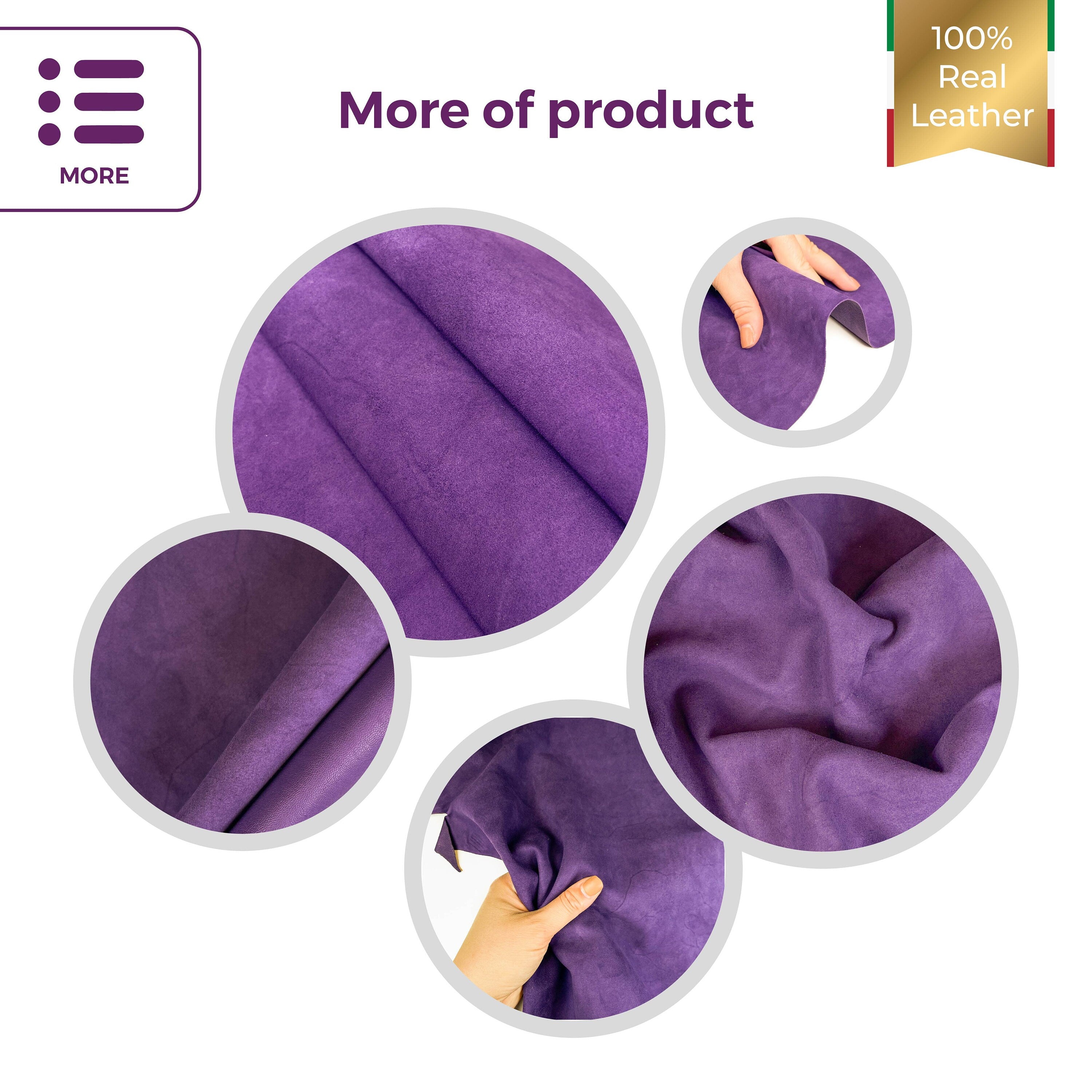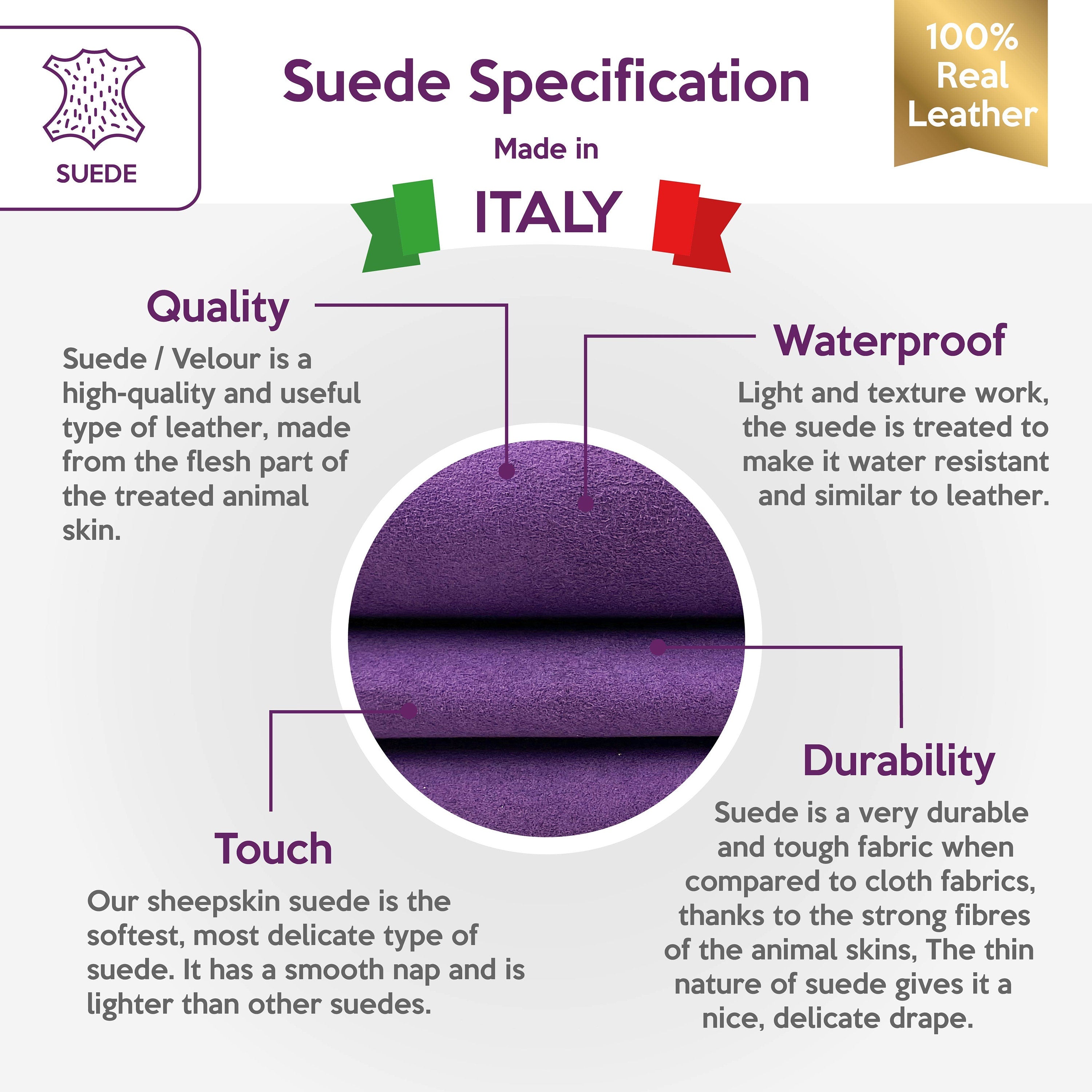 - Soft suede leather pieces. Viola velour material. Natural lambskin hides from the best Italian tannery. Perfect leather for sewing.