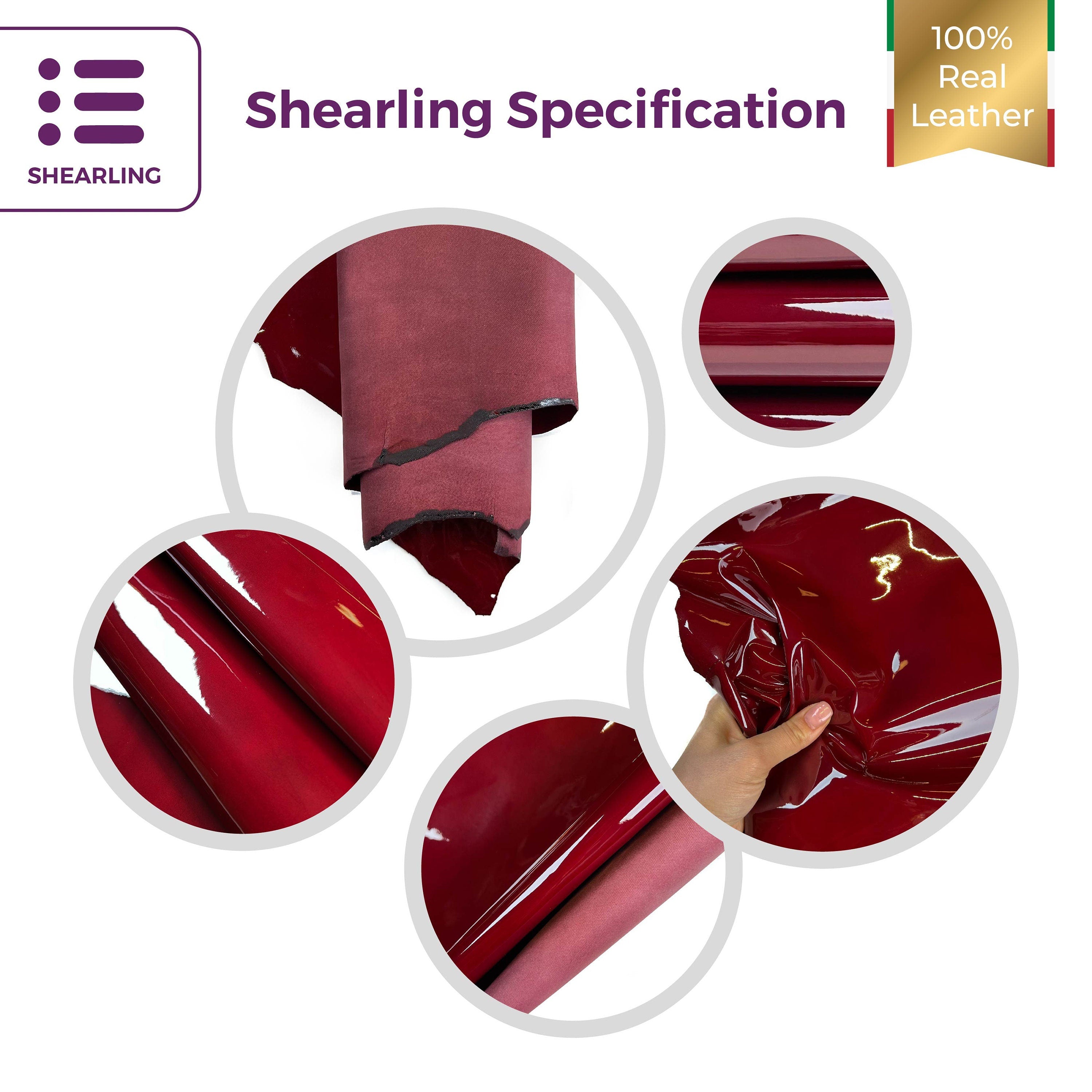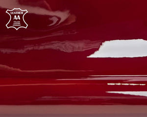 - Dark red patent leather fabric. Faux leather hides. Shiny leather for sewing. Thin, but will hold its form. Backside is burgundy. Beautiful glossy finishing. High quality leather.