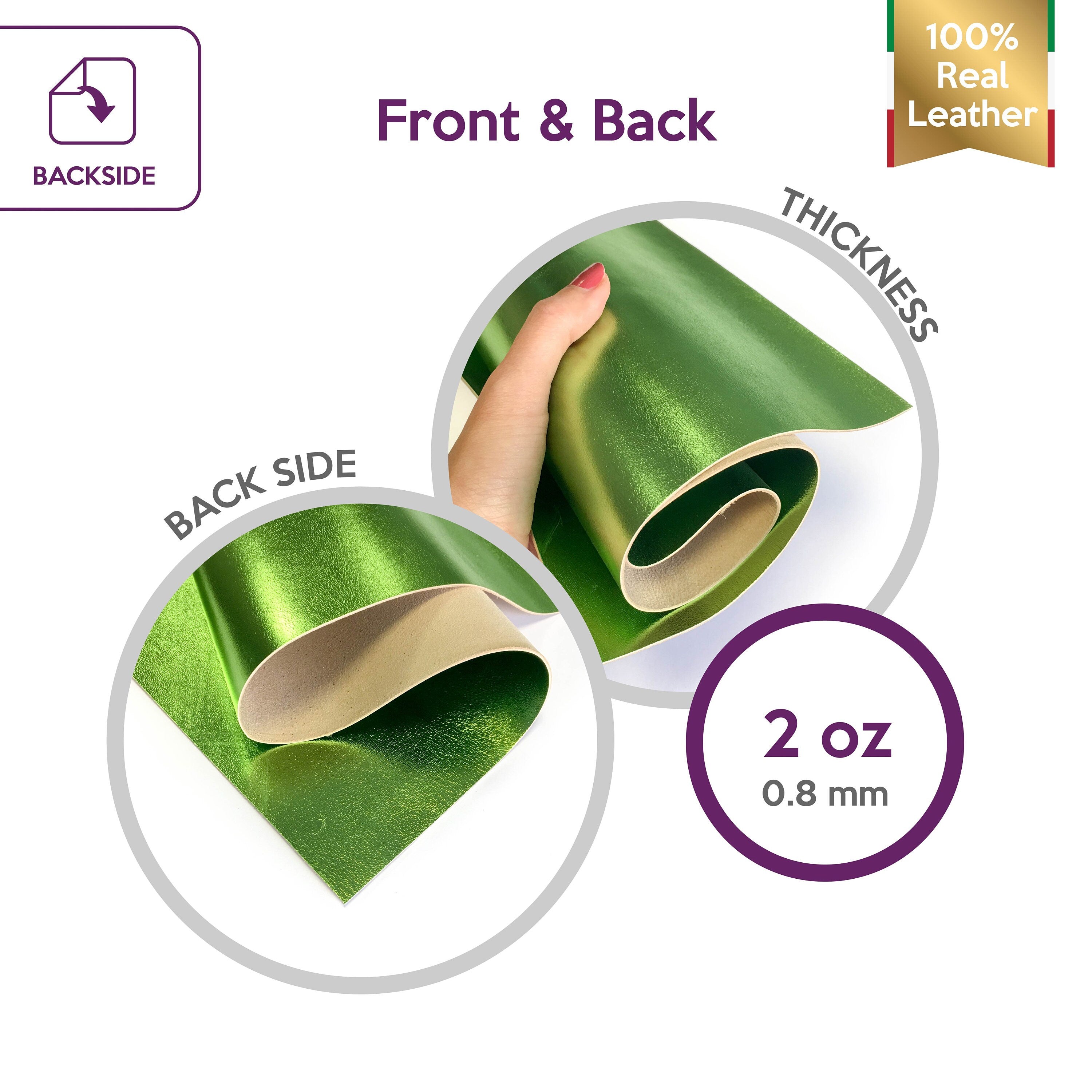 Shiny green Leather Skins are supple and smooth, backside is light brown. Thickness at around 2 oz or 0.8 mm. Great shiny green leather for jewelry, accessories, leather crafting, bright green leather bags e.t.c. Fresh color and great quality!