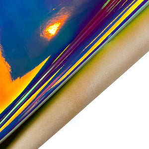 Bright Various metallic purple, blue and pink leather holographic colors. Shiny mirror effect. Need to be careful with folding - can leave visible marks.