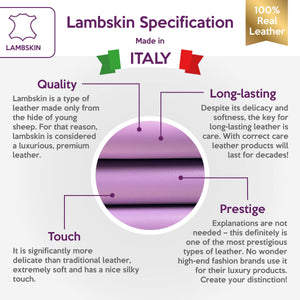 LAVENDER Leather skins for your best projects. Genuine light purple sheep skin leather, made in Italy. Quality, soft leather in pastel violet color with pinkish hue. Name: ENGLISH LAVENDER Code: 1210...