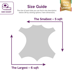 -Keep in mind that dimensions (square footage, square meters) on LEATHER refers to total workable surface area as hide shape is not consistent, so if this is the first time you buy genuine leather don`t be confused with measurements, for example 9 sqf DON`T mean 3 sqf of length x 3 sqf of wide.