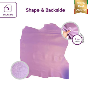 -Nice and quality thin lavender violet leather fabri. Soft, lightweight pastel hides, pleasant on touch, easy to work with, not too elastic. Bit shiny.