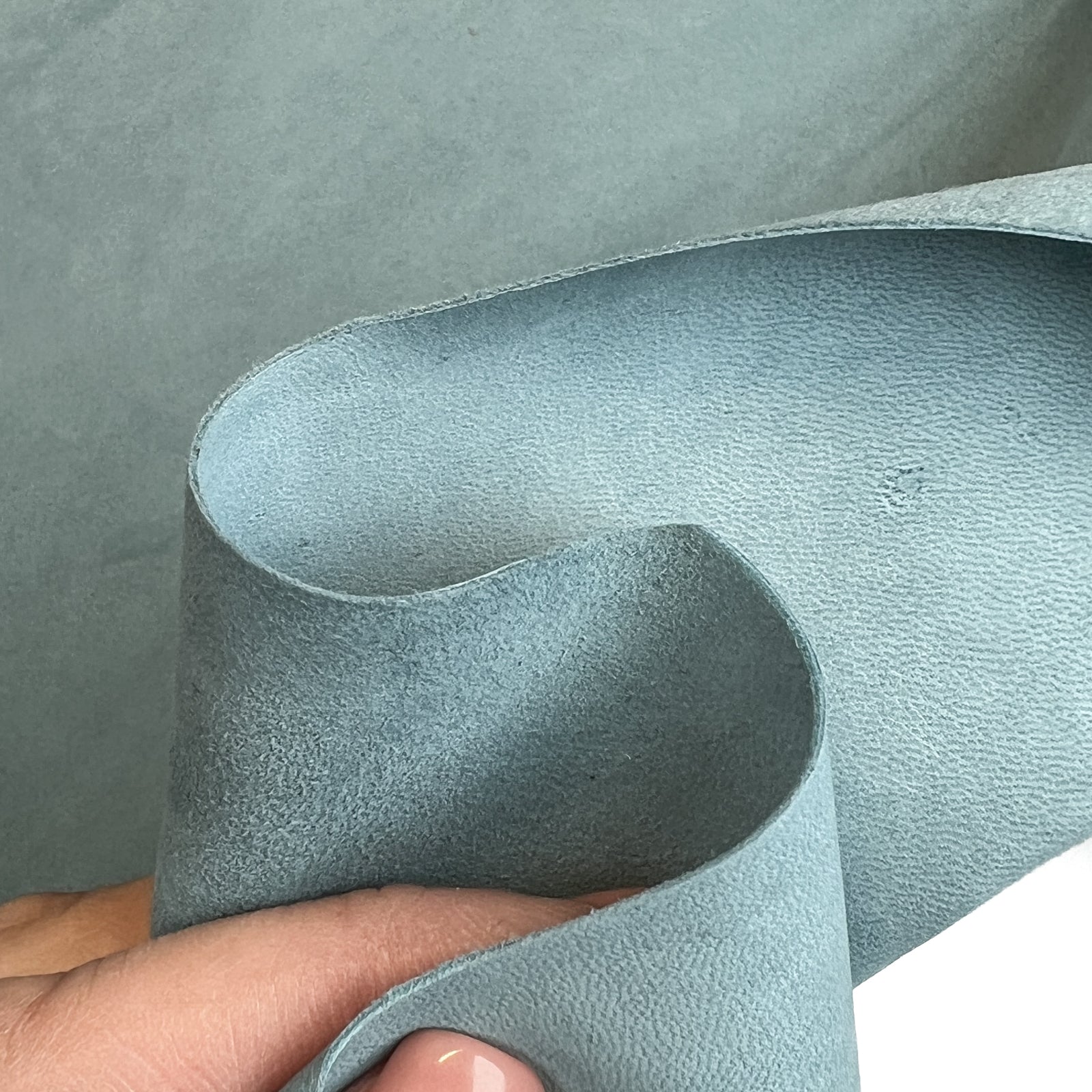 Light blue suede leather. Thin velour fabric is very soft and easy to work with. Our mission is to provide only the highest quality Italian leather to other leather workers, crafters...