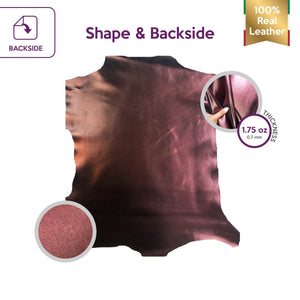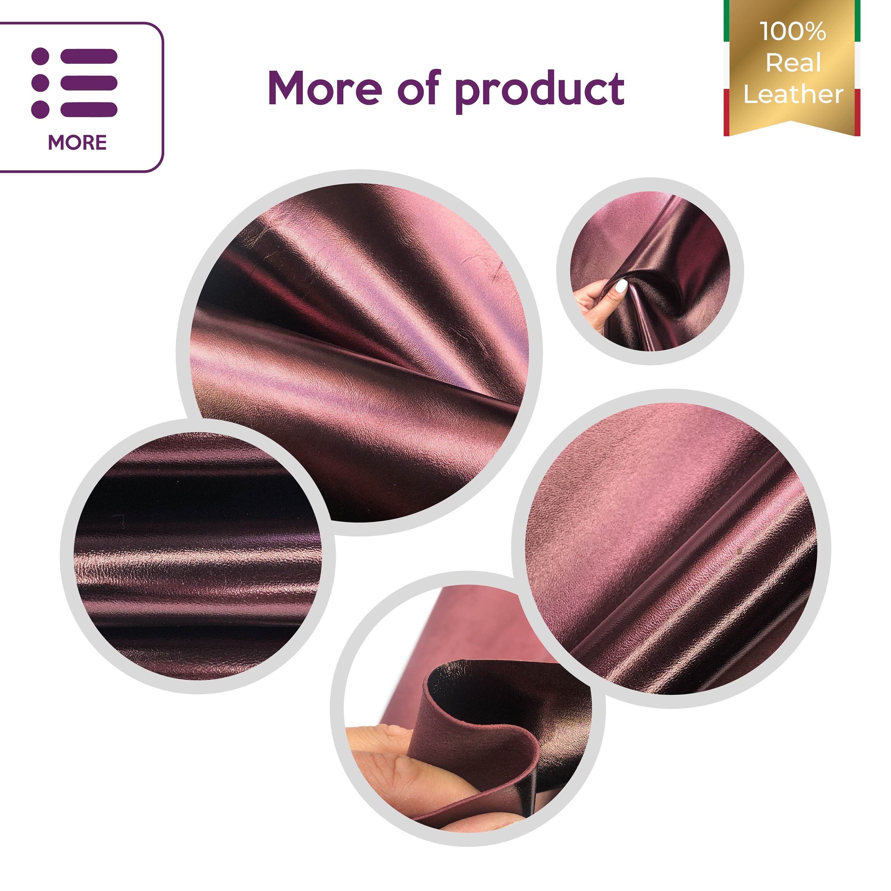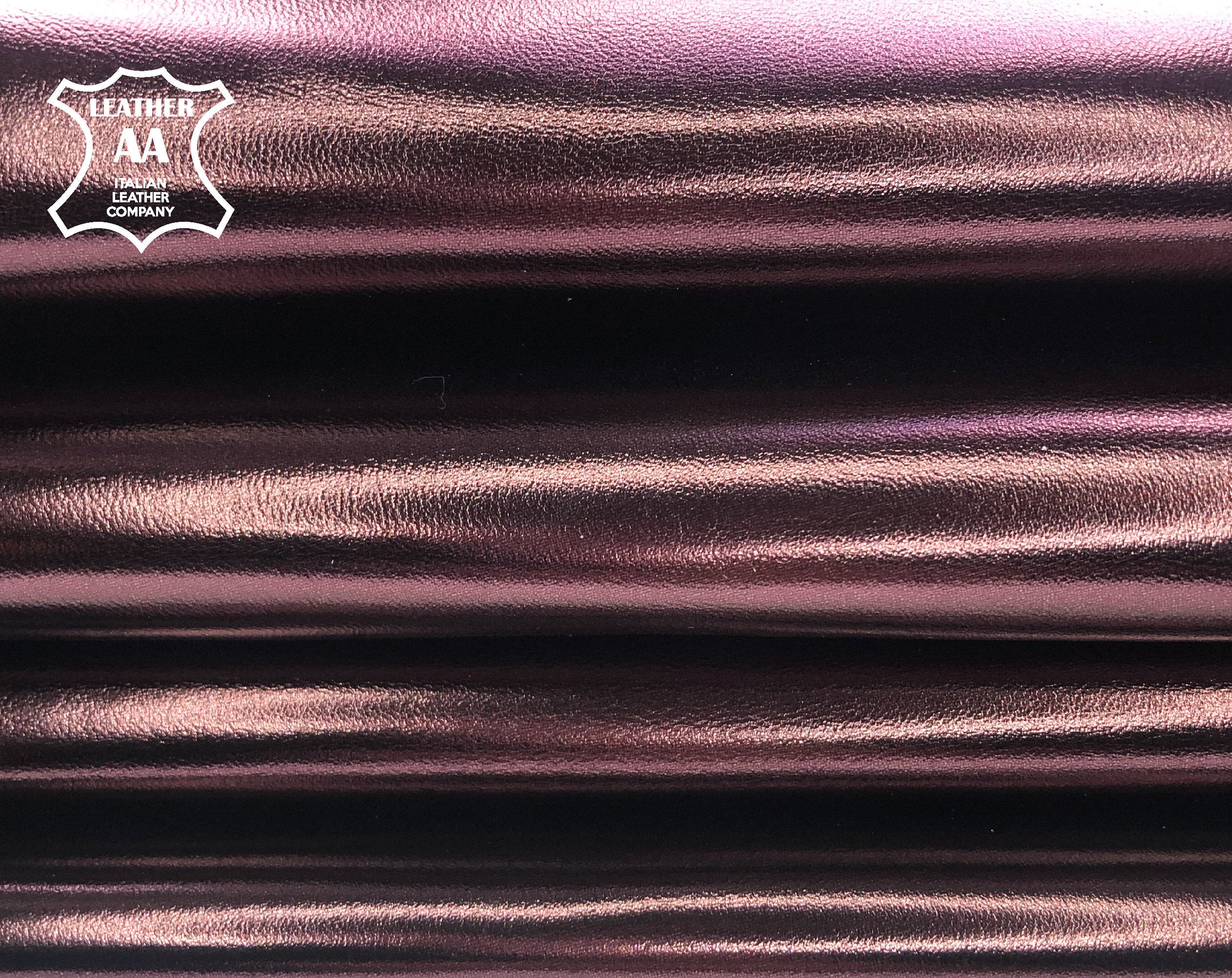 -Gorgeous Italian leather pieces. Metallic wine leather hides for sewing. Quite thin leather hides. Shiny with metallic foil all over. Perfect leather for creative projects.