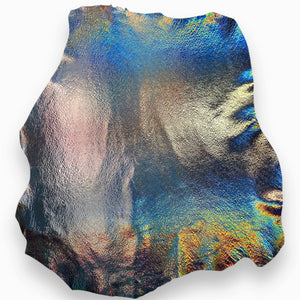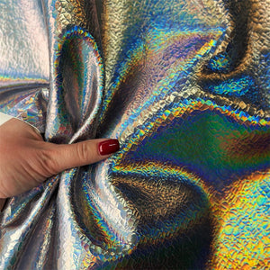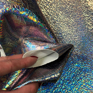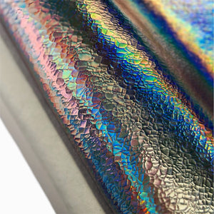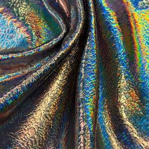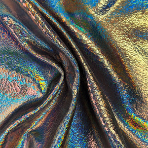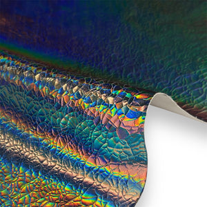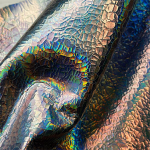 Shiny metallic lambskin with cracked holographic print. Shiny textured hides. Amazing leather for bag and purse crafters will be long-lasting. Our mission is to provide only the highest quality Italian leather to other leather workers, crafters of all kinds, small businesses, or shops for your projects.