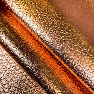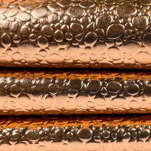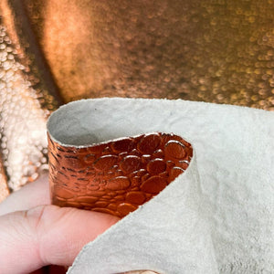 Rose gold lambskin leather with embossed stone print. Crafting pieces for sewing. Perfect metallic leather for jewelry. DIY leather.Ā