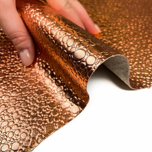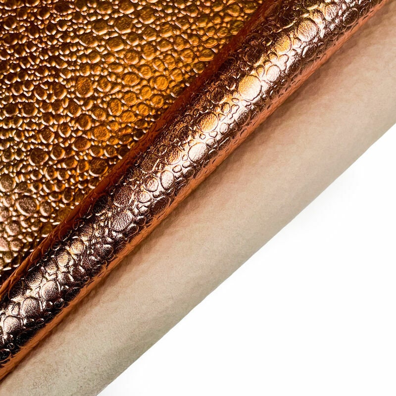 Rose gold lambskin leather with embossed stone print. Crafting pieces for sewing. Perfect metallic leather for jewelry. DIY leather.Ā  Name: Rose Gold Stones Code: 1074Ā  Color: Rose gold Backside: Beige šŸ“...