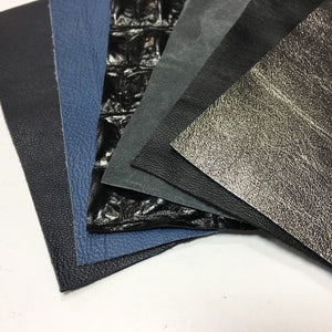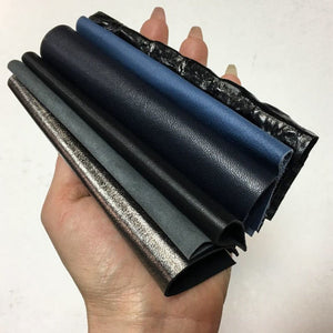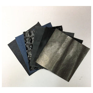 Six Leather pcs 5x5in - Blue, Black Embossed, Metallic Silver, Gray Suede