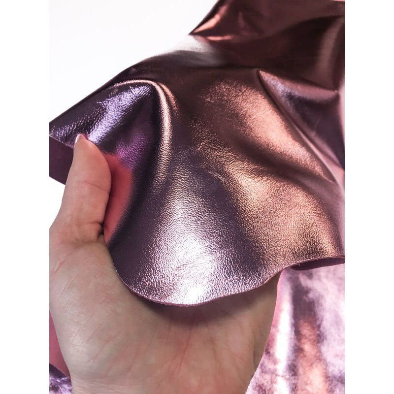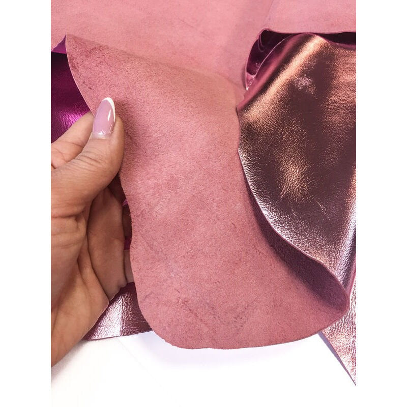 -Pink Metallic Sheep Hide leather pieces, available both - whole small sheep hides and precut leather sheets. 100% Real, shiny pink metallic leather, not too stiff, quite supple, in gorgeous pink color, Italian made metallic leather print, natural royal pink leather for crafts, in thickness 0.8-0.1 mm or 2.0-2.5 oz.