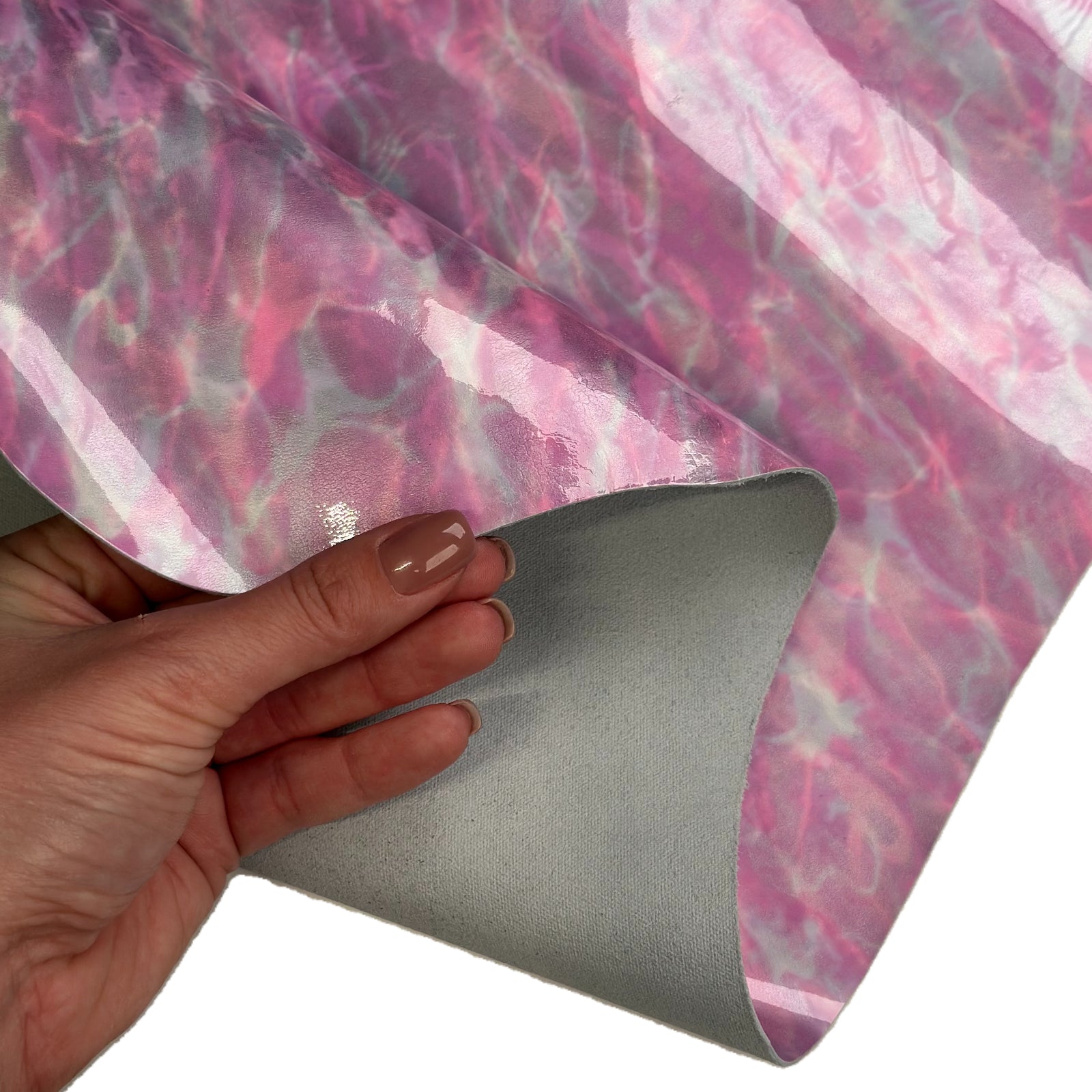🌸 Bring bold colour and shine to your projects with this gorgeous Pink Patent Water Marble Print Lambskin.