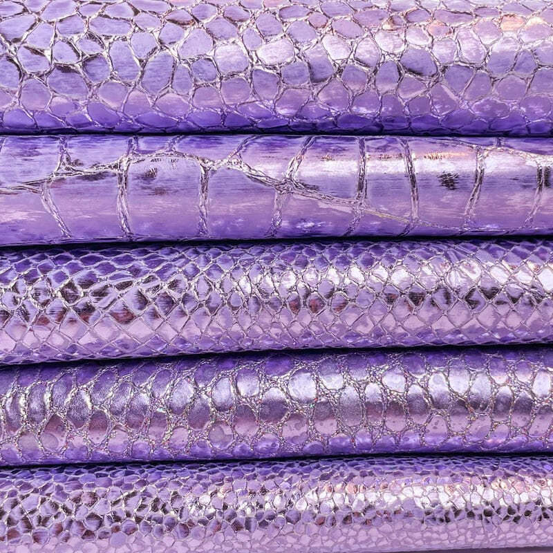 High-quality lambskin purple metallic leather. Various animal prints for your best projects! Our mission is to provide only the best quality Italian leather to other leather workers, crafters of all kinds, small businesses, or Etsy shop for your own projects.