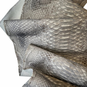 - Natural python skin sheets in gray shades, real leather from python. Quite soft, beautiful pattern with scales. Classic luxurious snake leather.