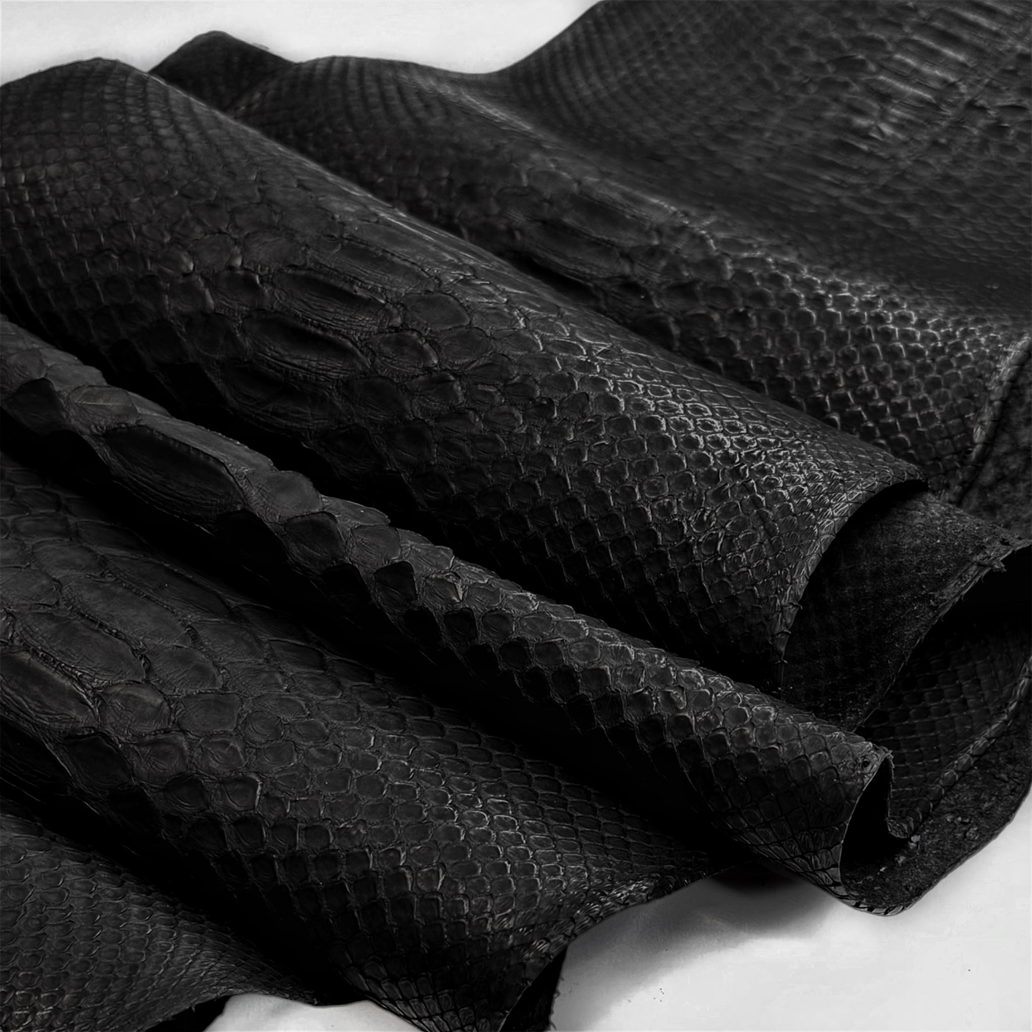- Natural matte snake skin sheets in black, real leather from python. Quite soft, beautiful pattern with scales. Classic luxurious snake leather.