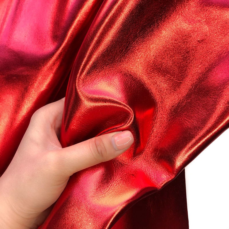 - These genuine calf leather hides are very easy to work with. Red metallic leather pieces for sewing.