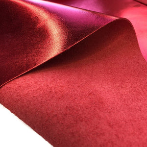 RUBY RED METALLIC LEATHER Genuine Calf Leather in shiny metal red color. Glossy red metallic hides for sewing Name: RUBY RED Color: Red metallic Backside: Red Thickness: 0.8 mm / 2...
