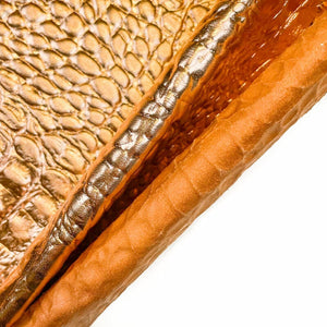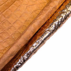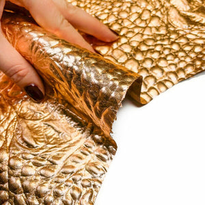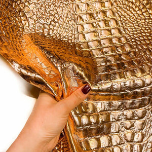 High-quality lambskin leather fabric hides in rose gold with crocodile/reptile print. Amazing crocodile print for your best projects! Our mission is to provide only the best quality Italian leather samples to...