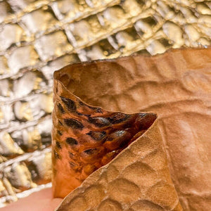 - Rose gold sheepskin leather with realistic reptile print. Crafting pieces for sewing. Perfect embossed leather for jewelry. DIY leather.