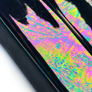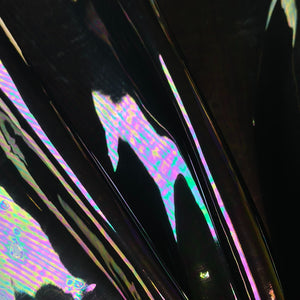 ✨ Add luxury and uniqueness to your leather projects with this stunning black patent lambskin, featuring a mesmerizing gasoline-like shine. The iridescent finish gives off subtle hues, shifting in light for...