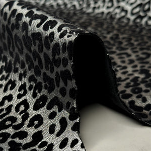 Dark silver metallic lambskin leather with black suede leopard print. Amazing leather for bag and purse crafters will be long-lasting. Our mission is to provide only the highest quality Italian leather...