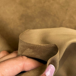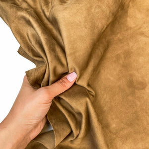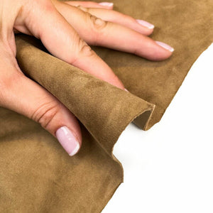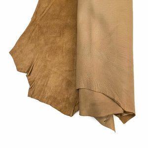 - Very soft brown suede leather pieces. Both sides of the leather are usable. Backside is not suede but beautiful regular lambskin. Fabric is perfect for sewing clothes such as leather shirts or summer jacket.