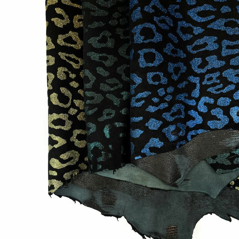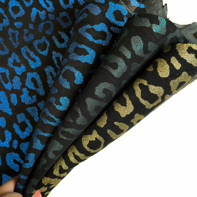 High-quality lambskin leather fabric hides with colorful sparkly print. Amazing leopard print all over leather! Our mission is to provide only the best quality Italian leather samples to other leather workers, crafters of all kinds, small businesses or Etsy shop for your own projects.