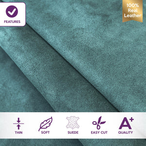 - Turquoise suede fabric is very soft for touch, not very elastic. Teal suede hides are great for leather crafts, is quite firm, good for bag making, turquoise suede earrings.