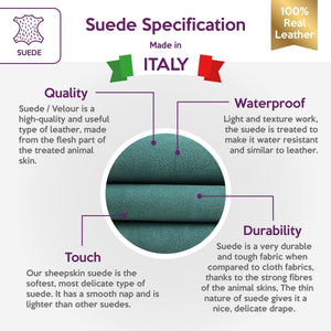 High-quality lambskin suede leather in turquoise color. Soft leather for your best projects! Our mission is to provide only the best quality Italian leather to other leather workers, crafters of all kinds, small businesses or Etsy shop for your own projects.