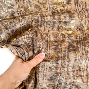 Color: Taupe, Golden bark print