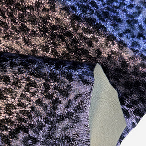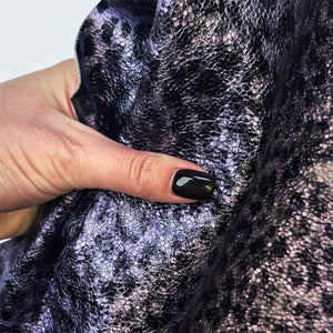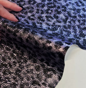 Crunchy violet lambskin pieces with leopard print. Shiny Thick pieces for sewing.