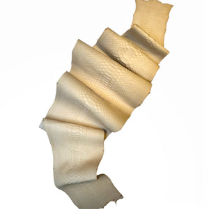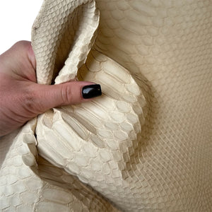 High-quality warm white real python leather sheets. Amazing snakeskin for your best projects! Our mission is to provide only the best quality Italian leather samples to other leather workers, crafters of all kinds, small businesses, or Etsy shops for your own projects.