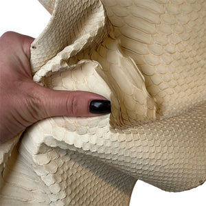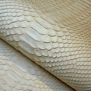 - Natural python skin sheets in white, real leather from python. Quite soft, beautiful pattern with scales. Classic luxurious snake leather.